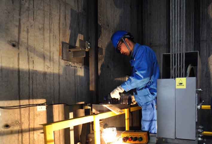 哈尔滨完美体育·(中国)官方网站 WANMEI SPORTS维保工人正在井道维保作业